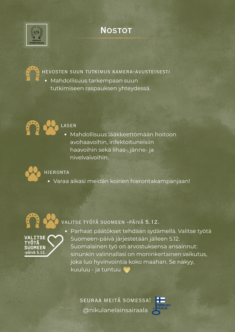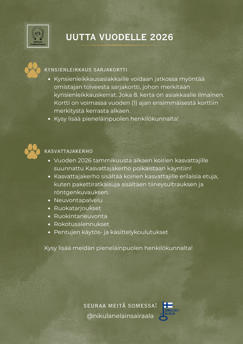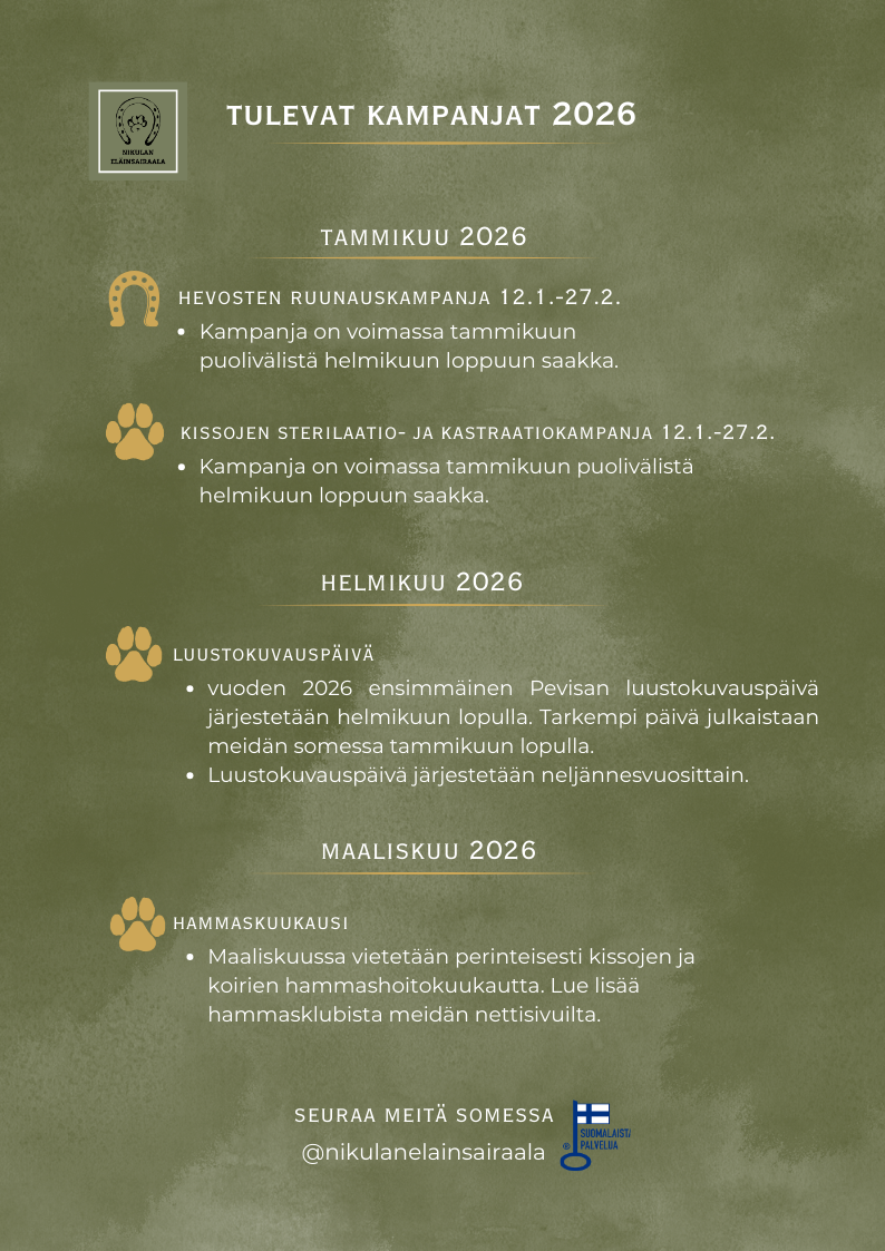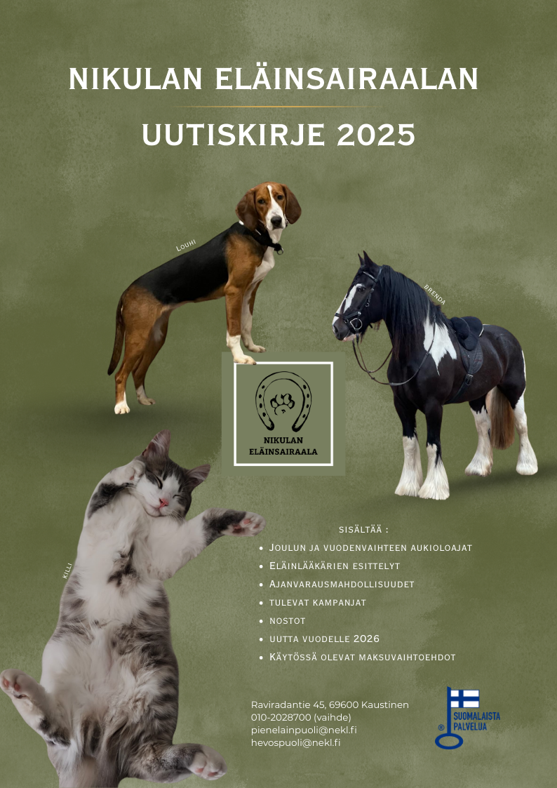 Kampanjat ja tapahtumat UUTISKIRJE 2025 (klikkaamalla kuvia saat ne koko näytön kokoisiksi) PIENELÄINKLINIKKA HEVOSKLINIKKA