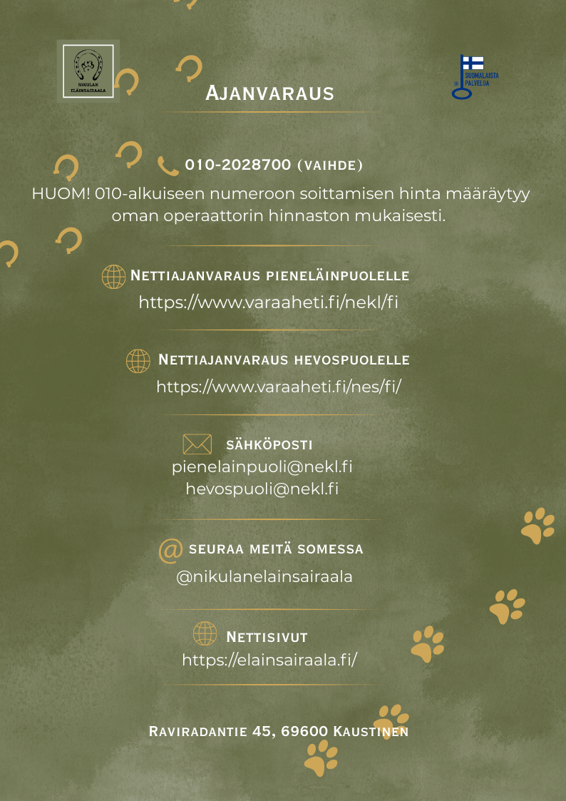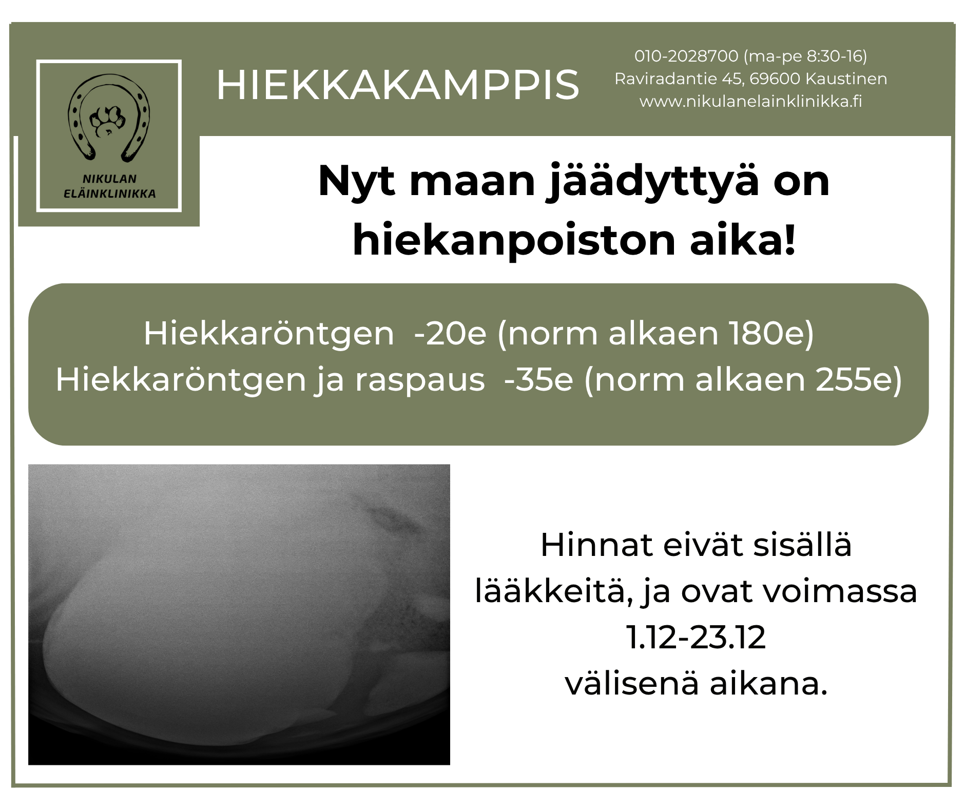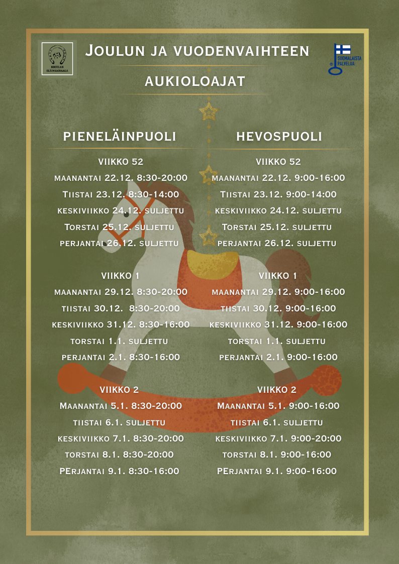 Kampanjat ja tapahtumat UUTISKIRJE 2025 (klikkaamalla kuvia saat ne koko näytön kokoisiksi) PIENELÄINKLINIKKA HEVOSKLINIKKA